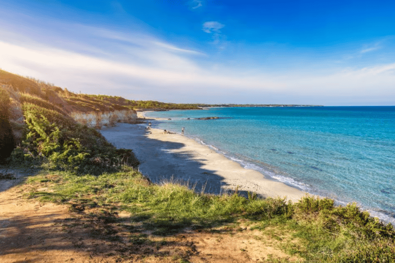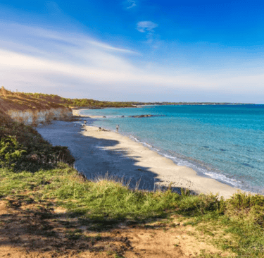 Coastal area known for long sandy beaches, shallow clear water, and dunes. Torre Lapillo is part of this stretch, popular for swimming and sunbathing.